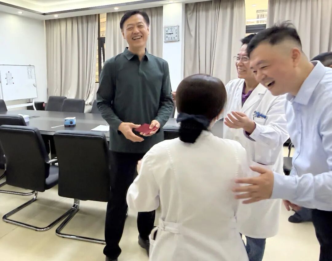 紧随慰问队伍的脚步,邱龙飞院长与返岗员工热情互动、深入交流,一边倾听科室节后复工安排、患者就诊筹备情况,一边细致询问医疗设备运行、就诊流程优化等重点工作,现场暖意融融、喜气洋洋,每一位职工的脸上都洋溢着开工的喜悦与奋进的决心。