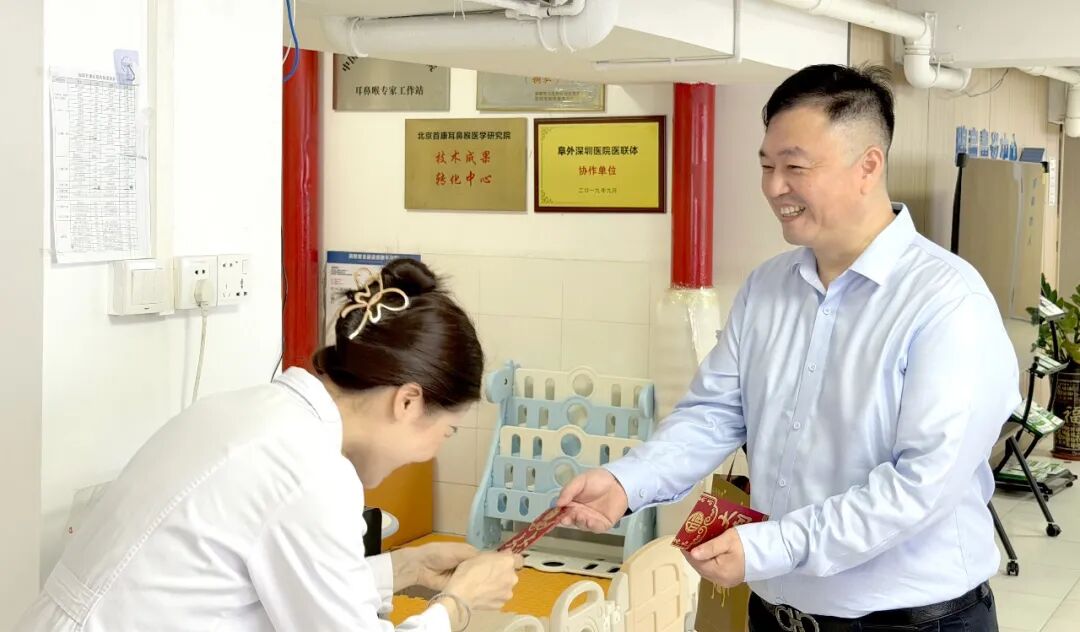 骏马踏春守健康,策马扬鞭赴新篇。2026 年 2 月 24 日(正月初八),春节假期后首个工作日,深圳首康医院全面复工,处处洋溢着昂扬向上的奋斗气息。当日上午,高巍董事长、邱龙飞院长带领院领导班子,深入临床一线、医技科室、行政后勤等各个岗位,开展新春开工慰问活动,向坚守岗位、开工返岗的全体首康人致以诚挚的新春祝福与深切的关怀,对大家节日期间“舍小家、顾大家”,默默守护市民健康的奉献精神致以崇高敬意,让每一位在岗职工都真切感受到医院大家庭的温暖。