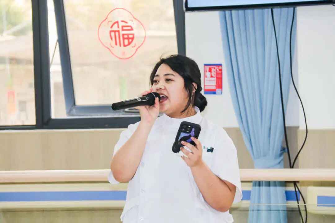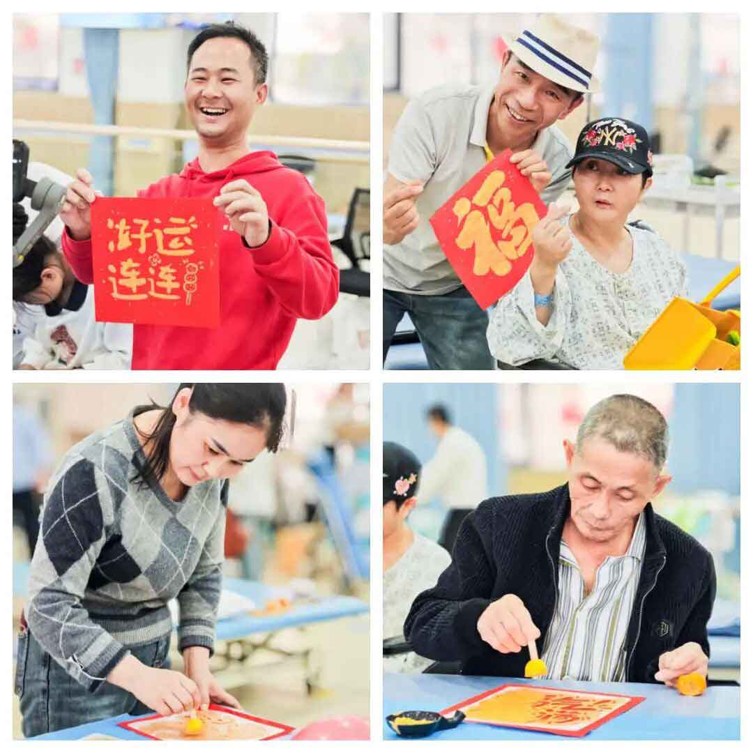 多才多艺的叔叔阿姨们带来了活力十足的舞蹈表演和吉他歌唱,展现了积极乐观的生活态度。在“手写心意,福至康宁”环节,患者、家属与医护人员共同提笔写“福”贴,将健康祈愿、深情祝福凝于笔端,传递出对美好康复生活的共同向往。